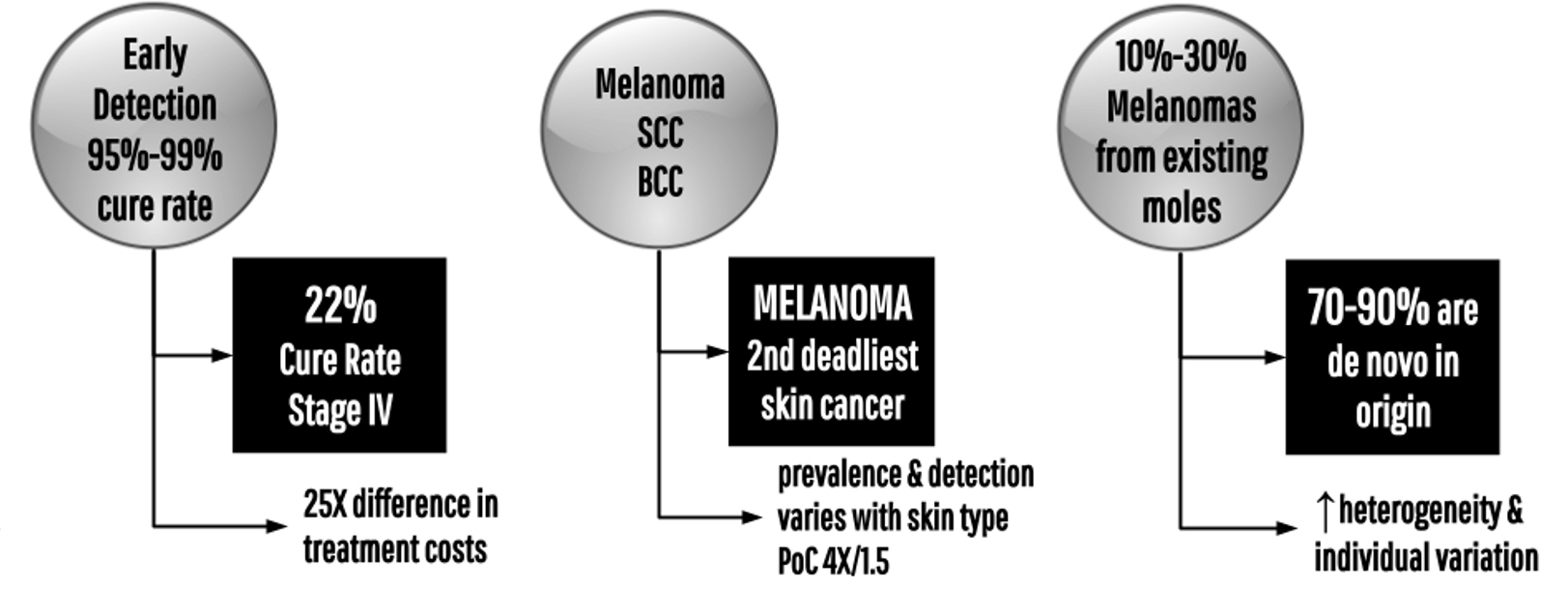 Clinicians are not specifically trained to recognize skin health issues in people of color. Skin issues present differently in people of color - a diagnostic and early detection problem that impacts 66% of the world's population with Skin Type III or above.