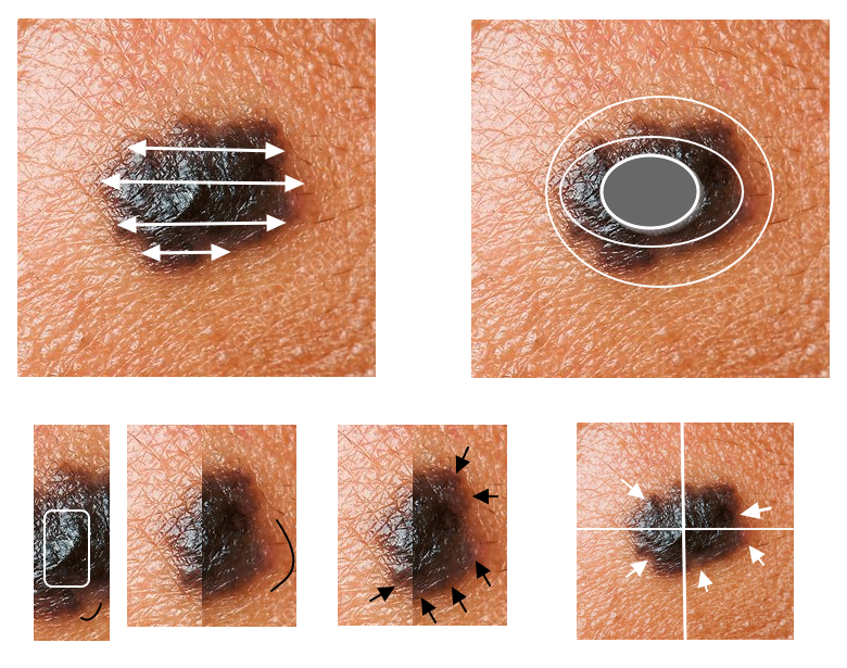 Conserving pigmentation for interior to edge to background analysis